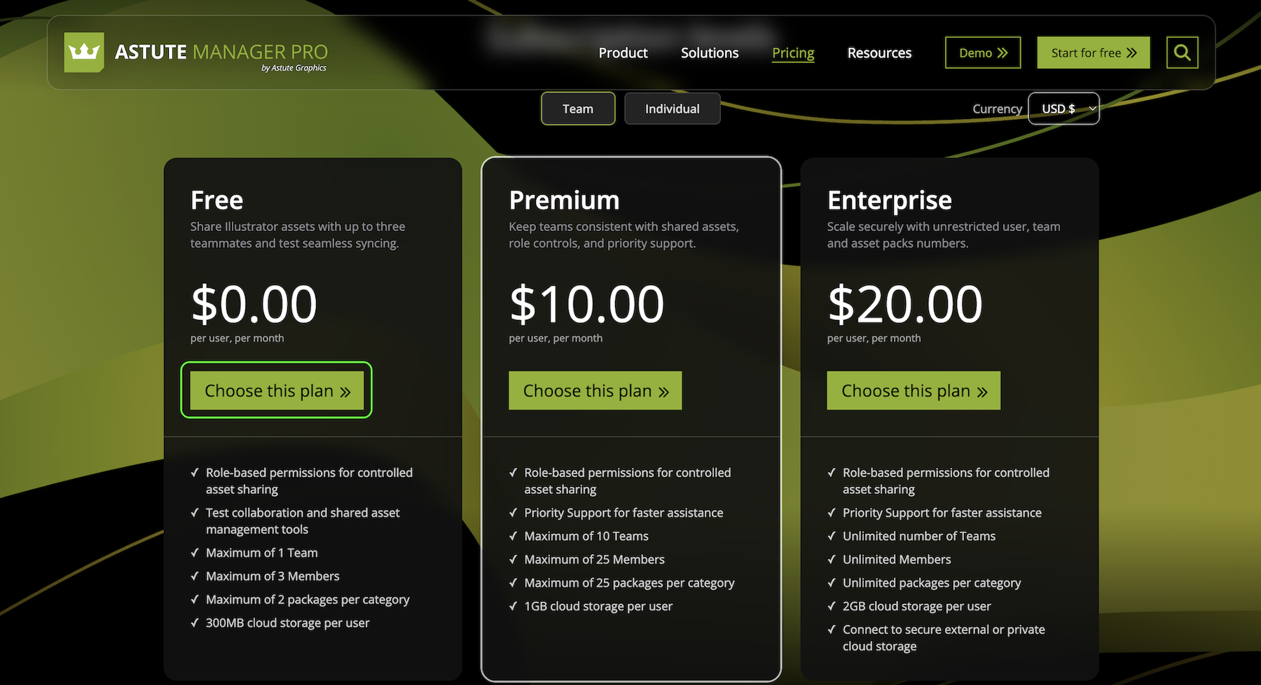 The Plugins can be used alongside an Astute Manager Pro subscription, so if you have a plugin subscription, you can have one or more teams with various levels of team members to benefit for sharing, syncing and updating a selection of Astute Graphics plugin assets and settings.
